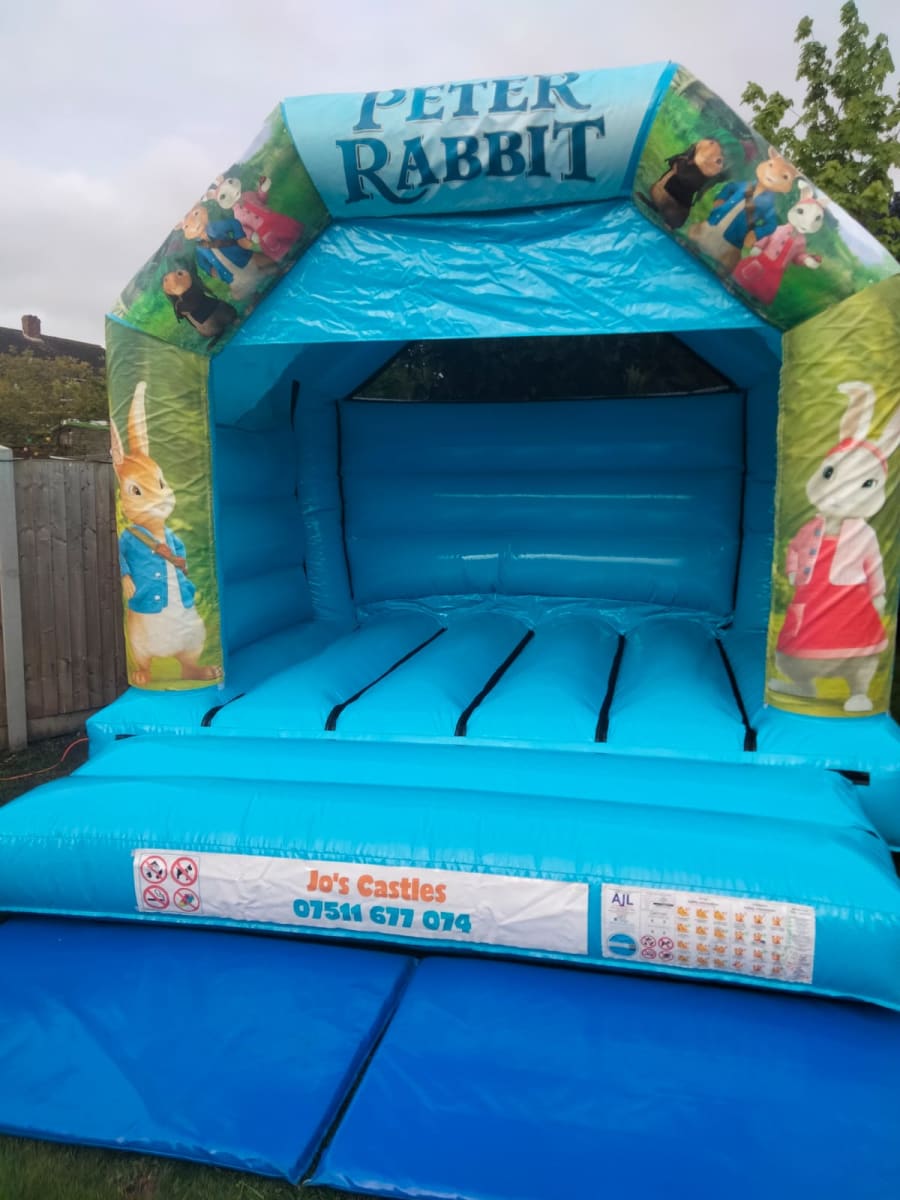 Bring the magic of Peter Rabbit to your next event with our Light Blue Peter Rabbit Castle! This bouncy castle is perfect for birthday parties, garden parties and halls. Experience the Fun of Hopping with Peter Rabbit